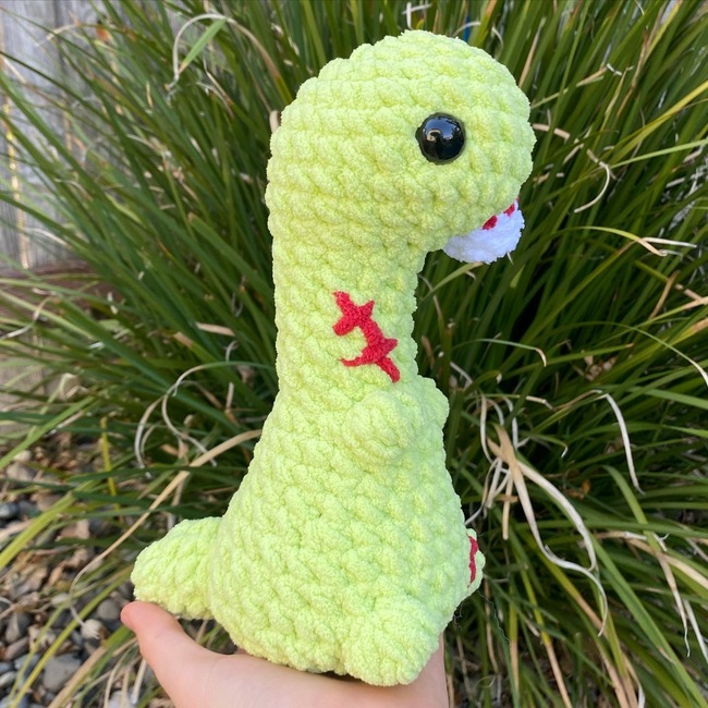 Crochet by madeline designed the Nubs the long neck Dino pattern. Find more of their patterns on their Ribblr shop page.