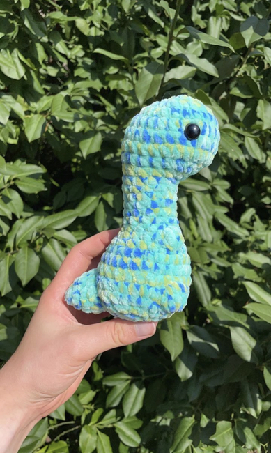 The Nubs the long neck Dino pattern makes a Amigurumi. It is a Intermediate Crochet pattern.