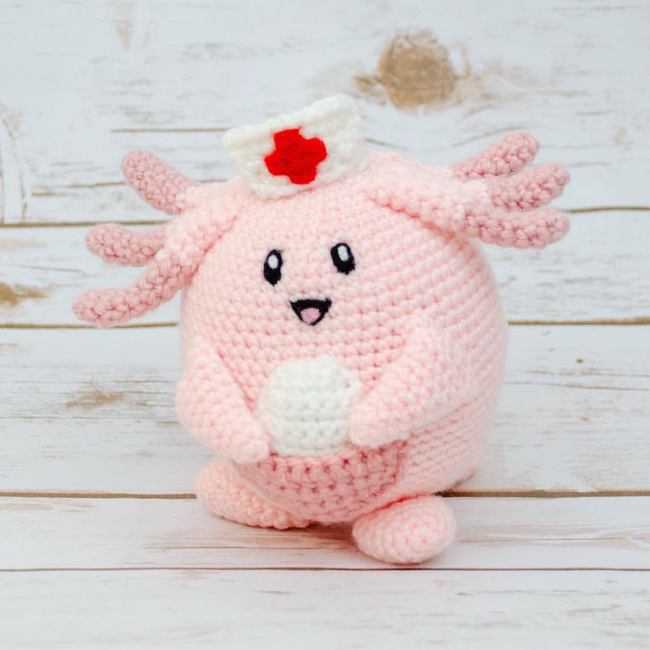 A Hare Affair designed the Nurse Chansey pattern. Find more of their patterns on their Ribblr shop page.