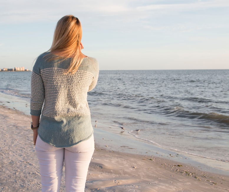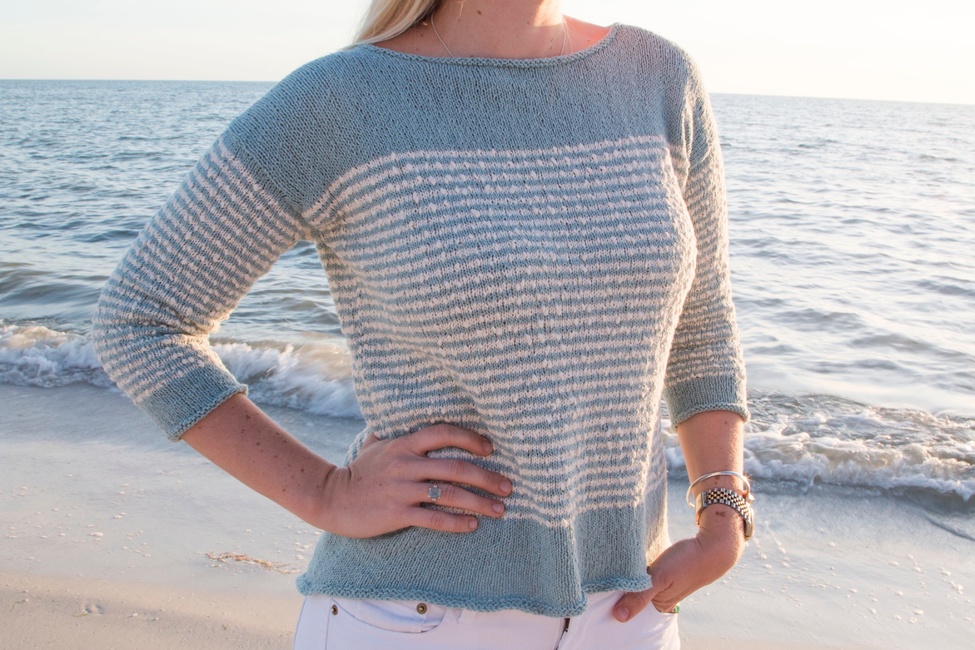 Knit One, Crochet Too designed the Ocean Blue Pullover 2400 pattern. Find more of their patterns on their Ribblr shop page.