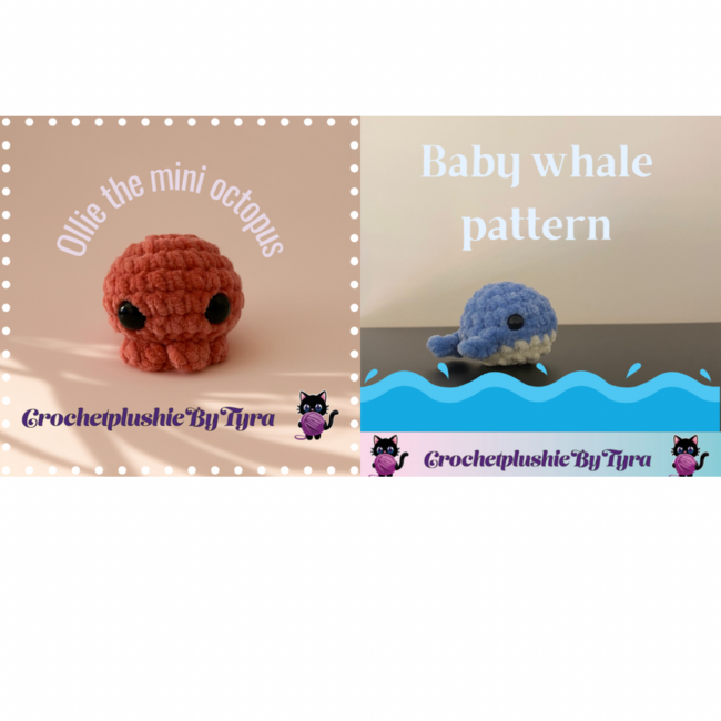 This is a bundle of my Ollie the mini octopus and my baby whale pattern