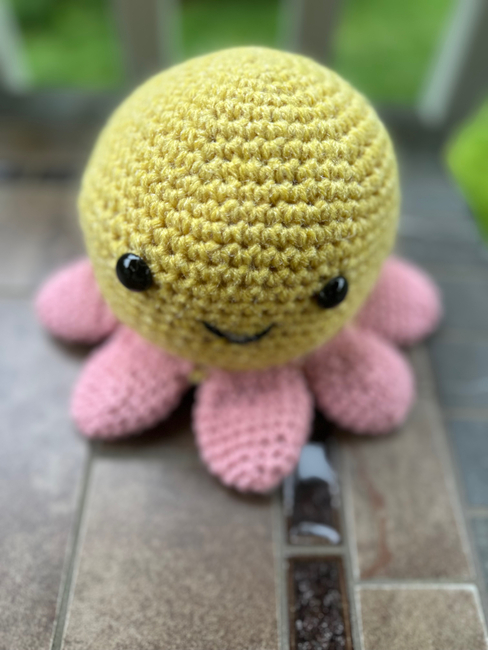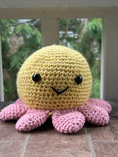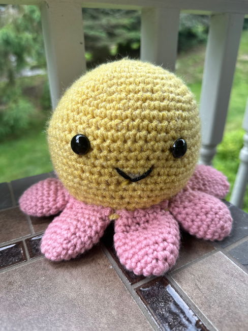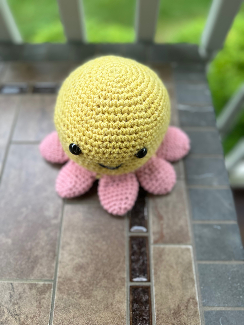 "Meet Octavia the Octopus, a charming sea creature with a unique twist! Instead of ordinary tentacles, Octavia has soft, petal-shaped tentacles that make her stand out from the rest of the ocean crowd. With her gentle smile and whimsical design, she's the perfect cuddly companion for anyone who loves sea life with a creative flair. Whether sitting on a shelf or ready for playtime, Octavia is sure to brighten any space with her delightful personality."
