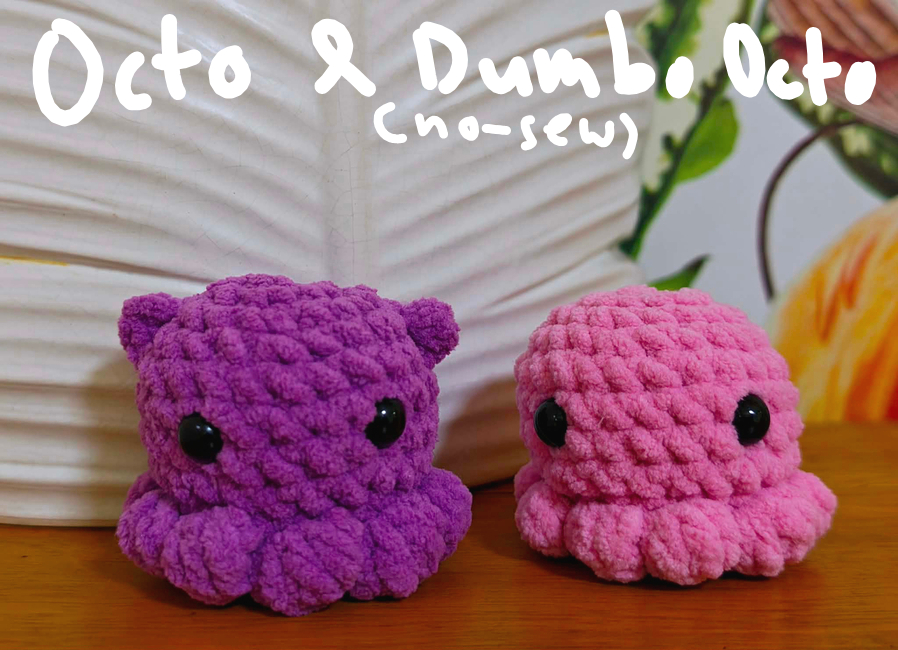 Octo and Dumbo Octo (No-sew) is a Beginner Crochet pattern designed by Sugar's Crochet Studio More patterns from this designer are available on their Ribblr shop page. for making an Amigurumi. Language: English (US & UK terms). Format: Ribblr ePattern (interactive digital). Price: Free. 3 crafters have shared their finished makes on Ribblr. 3 reviews, 100% recommend it. Saved by 5 crafters.