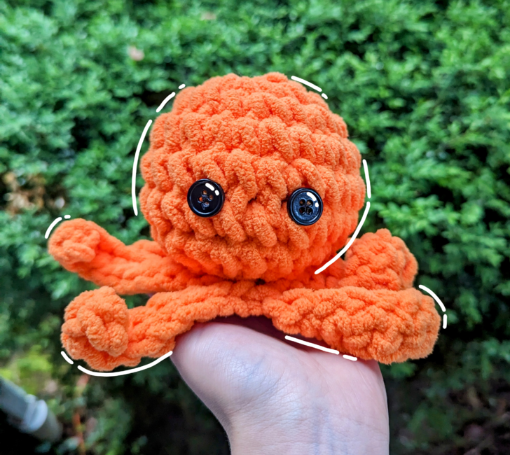 To make Octopus you will need: Stitch marker, Stuffing, Eyes (button or safety). Tools required: 8mm.