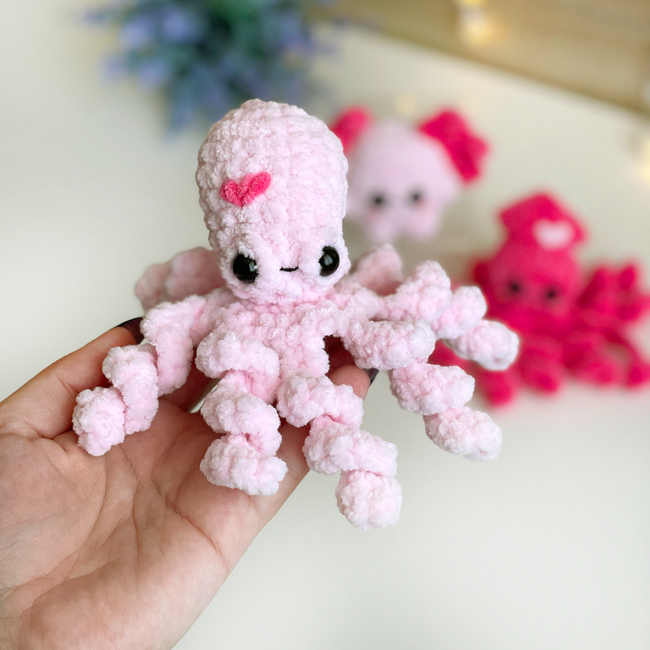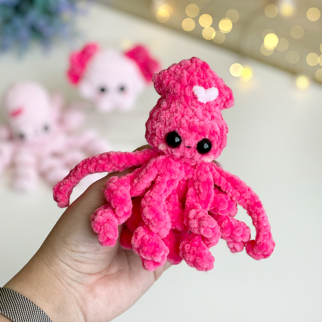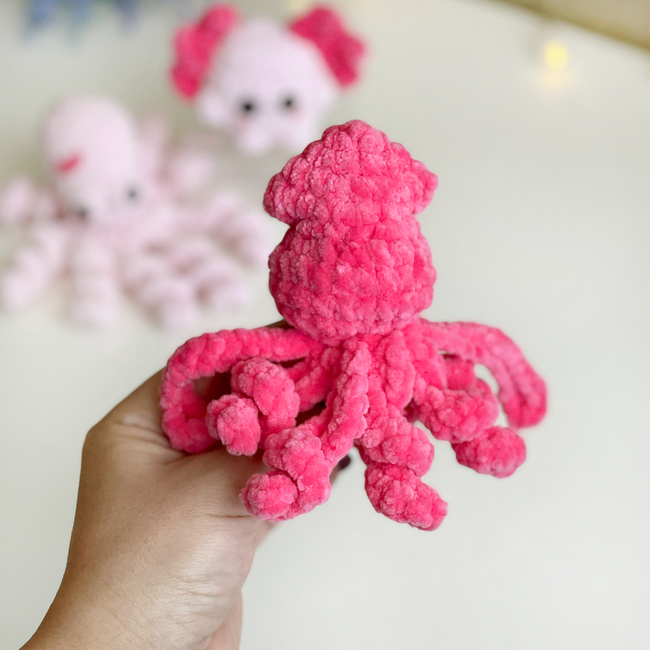 Perfect for plush yarn lovers and anyone who enjoys quick, satisfying projects with curly tentacles and cute details.