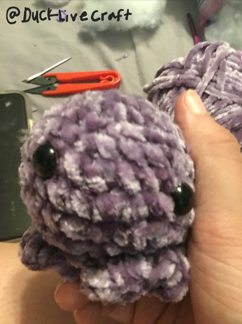 To make Olie the Octopus (stress pet) you will need: an assortment of scrap yarn, black embroidery floss, safety eyes or buttons (2mm-4mm recomended), polyfil stuffing. Tools required: G or 4 mm for dk weight H or 5mm for thicker weight, scissors, darning or tapestry needle.
