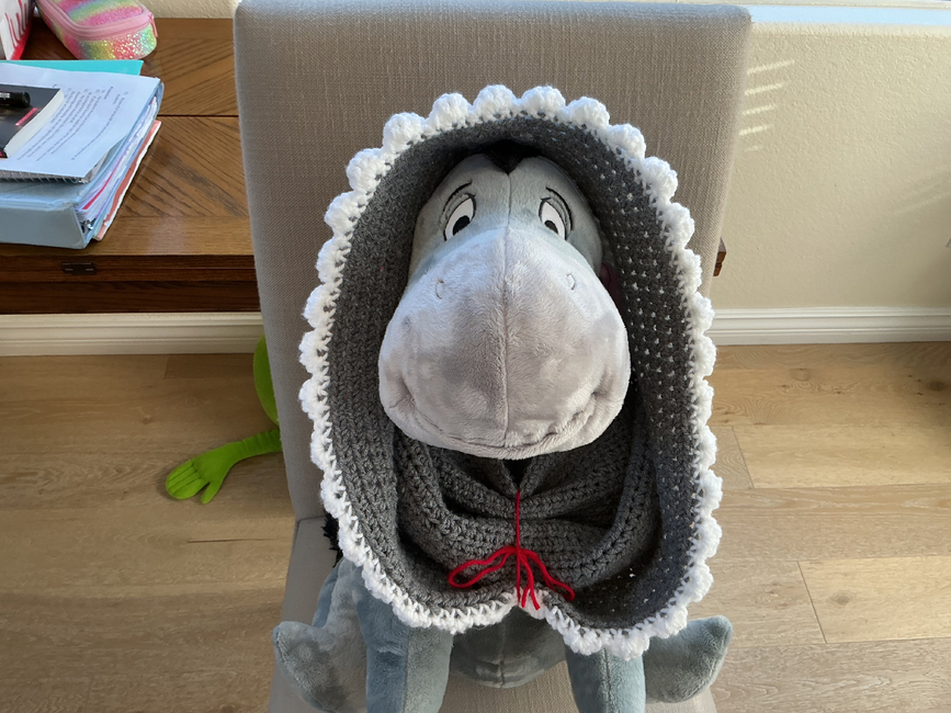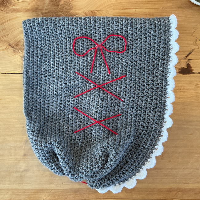 Make the scariest -I mean cutest- wolf hood around! With red accents and a cute fringe, you'll be howling in style. Change the colors to make every version possible!