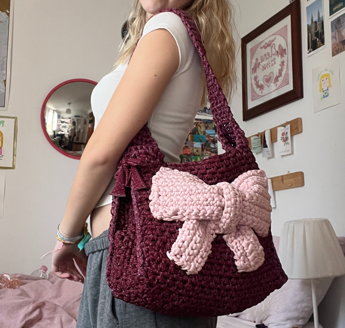 One Day Bag is a Beginner Crochet pattern designed by what ele makes for making an Accessories. This is a beginner- friendly pattern, the bow is a pocket, it includes graphs and pictures!!