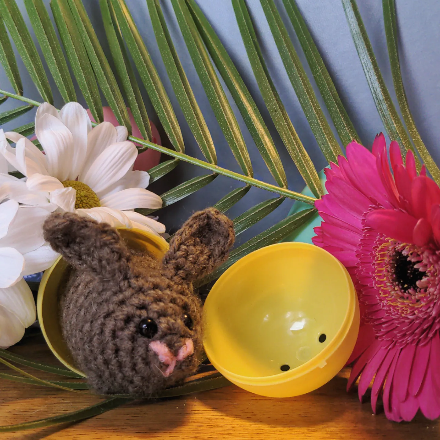 The only sewing involved in these amigurumi bunnies is stitching on their little nose and closing up the hole at the end! They are super quick to make and fit perfectly in those little plastic fillable easter eggs!