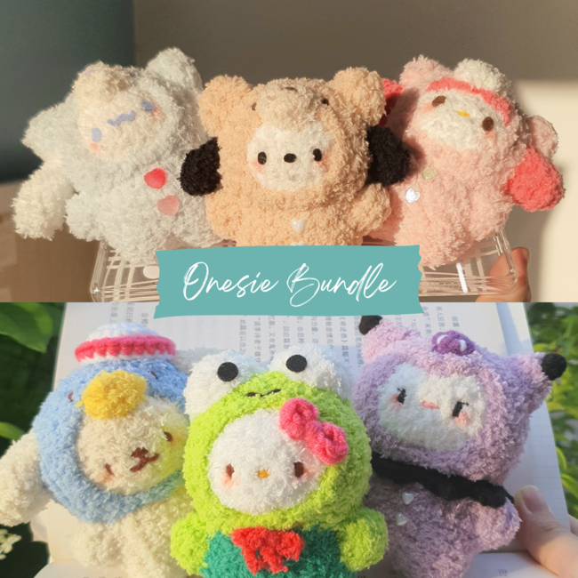 If you're a onesie doll enthusiast like me then this is the bundle for you! It contains four patterns: Teddy Onesie Characters, Puppy in Penguin Costume, Froggy Kitty and Joker Kitty Onesie!