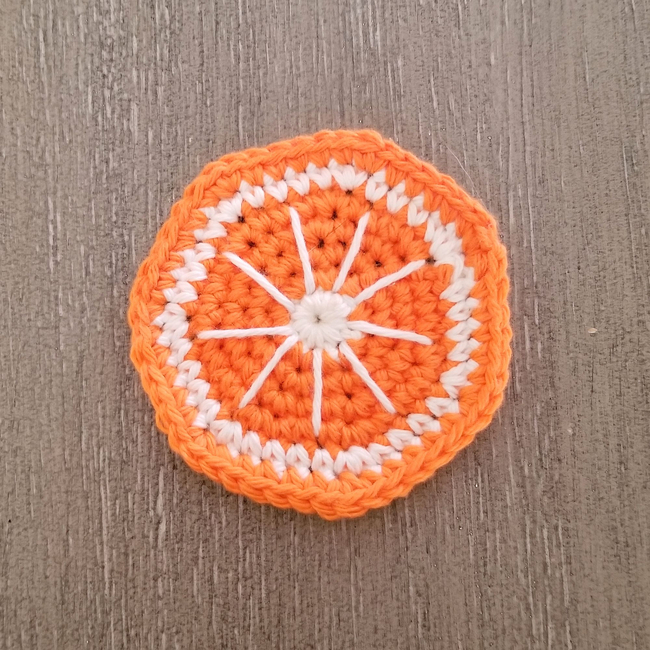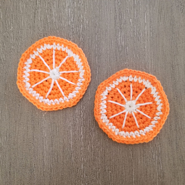 his orange slice coaster pattern is easy to read for beginners and works up quickly. They are a great use of scrap yarn.