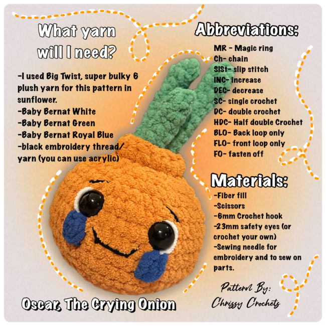 Bring a little bit of oniony charm to your crochet collection with Oscar! Click "Add to Cart" and start crafting your emotional little friend today!