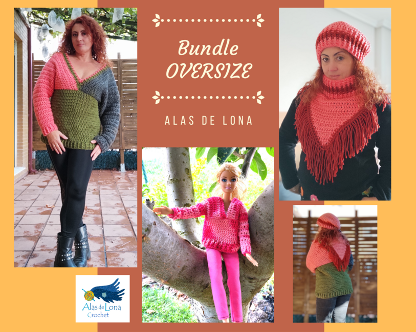 Patrones para hacer un jersey oversize para ti y un gorro caído y un cuello, formando un conjunto.