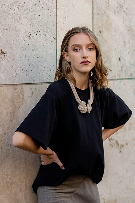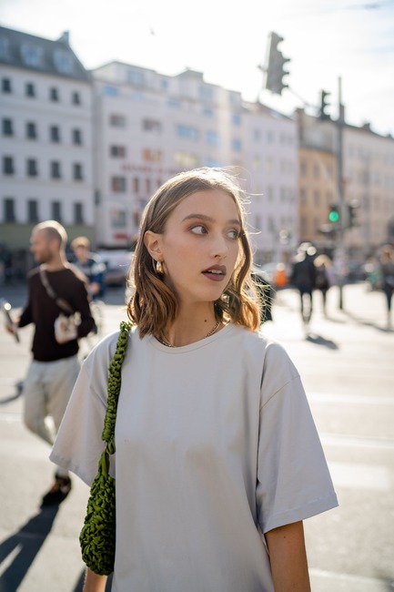 Tip: We use a medium-weight GOTS-certified organic cotton jersey made from 95% cotton and 5% elastane with a weight of 200g/sqm for the oversized T-shirt pattern.