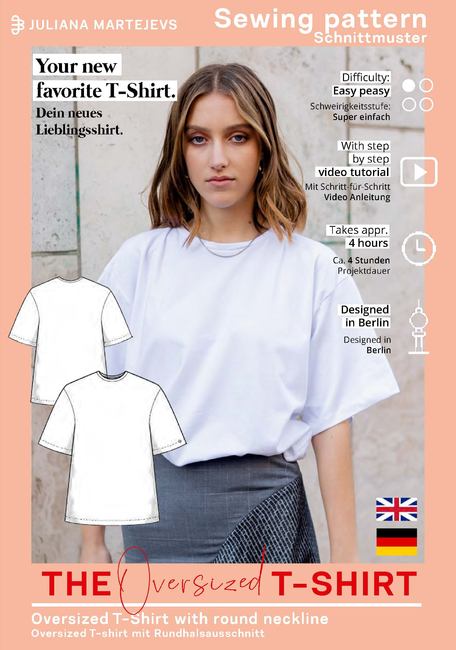 -Oversized T-shirt sewing pattern in German and English (in sizes XS-XXXL or customized to your measurements, either as a paper pattern or as a PDF download in DIN A4 and US Letter)