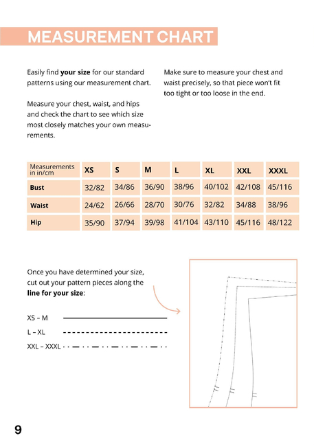 -ebook (English, French & German) including: layplan, styling tips, list of materials, and written, illustratred sewing instructions