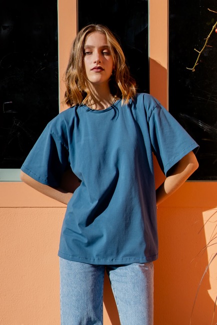 With the oversized T-shirt pattern you can sew yourself a wide T-shirt with short sleeves.