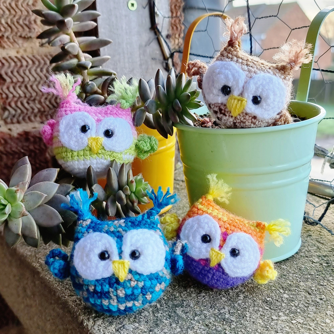 You can keep them as they are to sit at your desk or to hang out on a shelf. You can even add a keychain so you can take them out with you on your bag or keys. They're versatile little owl buddies.