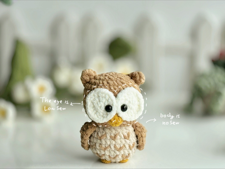 Owl Low Sew Crochet Pattern, No Sew Amigurumi Crochet Patterns, Crochet Pattern, Plushie Pattern