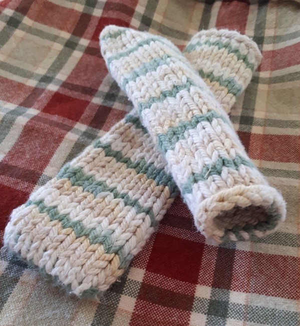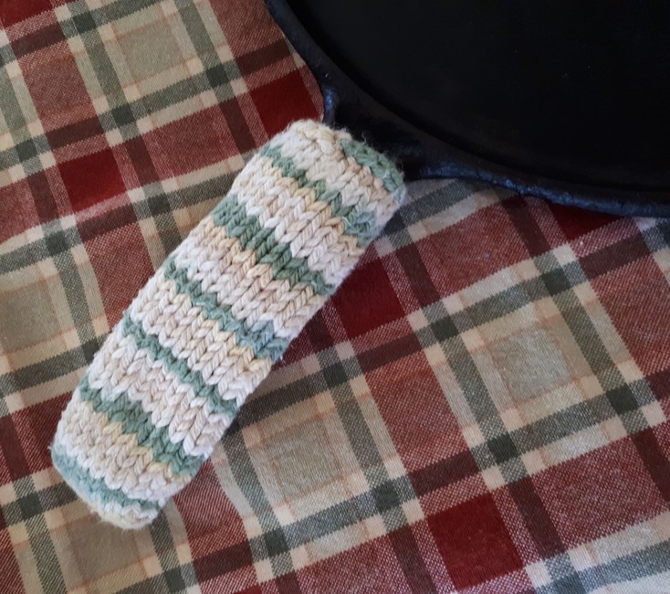 A quick knit to keep your hands cool. These pan handle covers take no time at all and are adjustable to meet all of your needs.