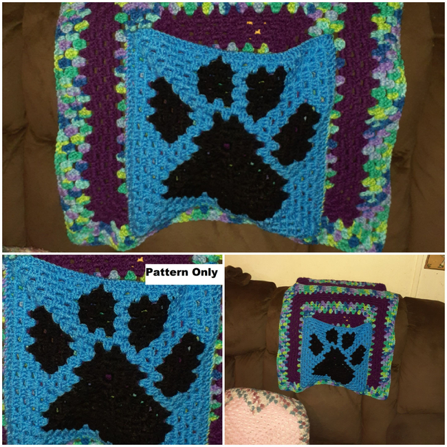 Pawprint design  Continuous Granny Square 12 Row Project Square