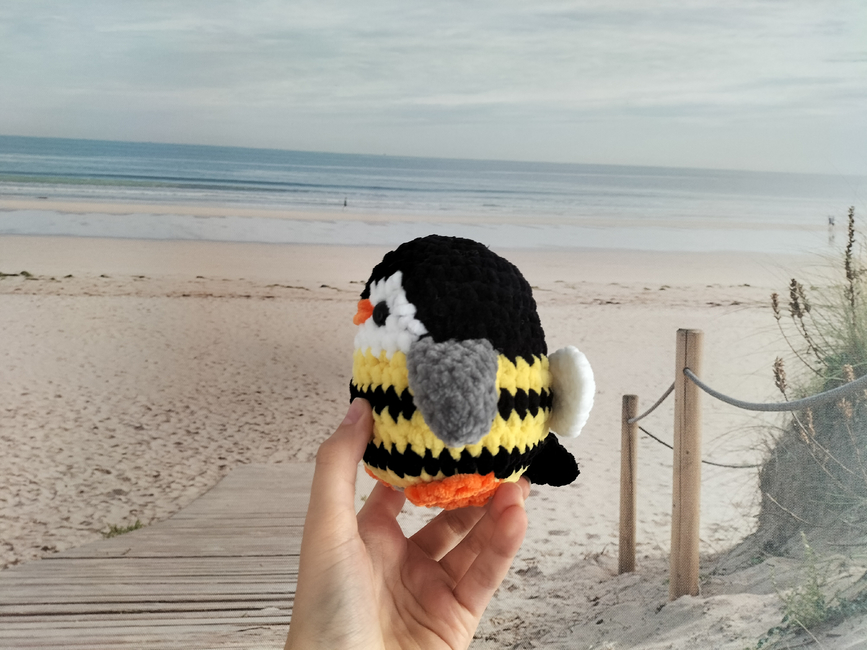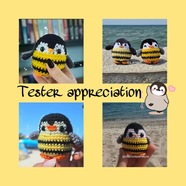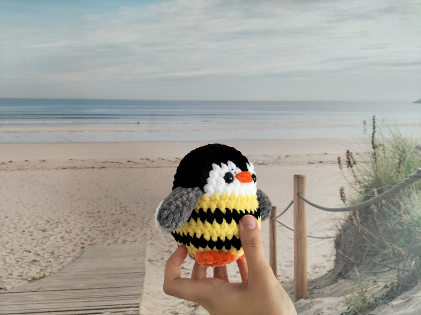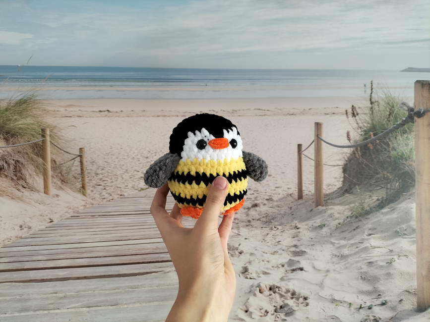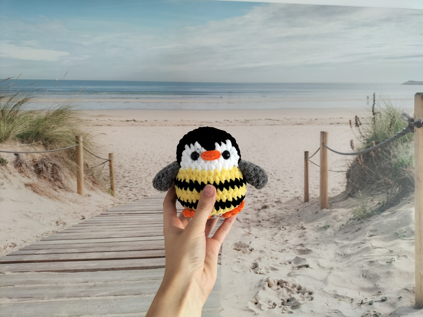 Hello! It's a pleasure to see you here! Welcome to my "Penguin in bee's costume pattern". Which is halloween vibes!