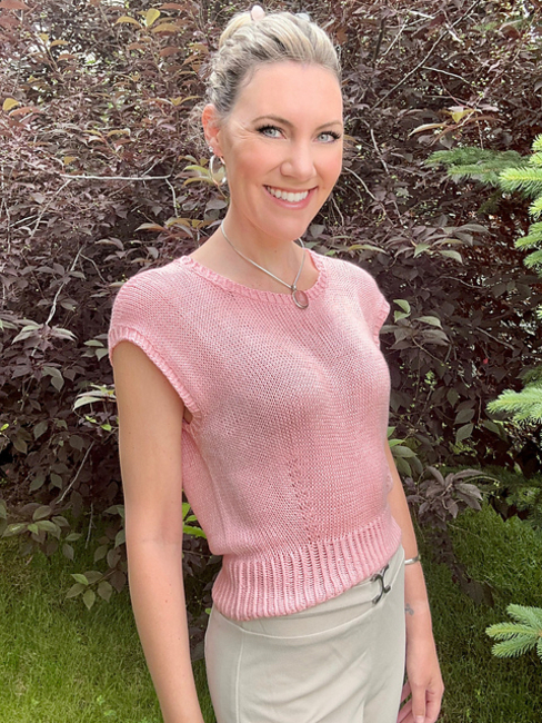 Inspired by dance wear and movement, the Percussion Tee is a modern take on a refined t-shirt! Designed for the drape of a plant-based fiber, it has a gorgeous fit and light weight feel. It is knit bottom-up and features "waist" darts in the front and back for a cinched-waist fit. The shoulders have shoulder shaping for a perfect drop-fit, and the neckline fits like a much-loved crew. Alternatives in the pattern include cinching the armholes, lengthening the body and relaxing the neckline. Wear it to lounge or dress it up, as it is a staple for many wardrobes!