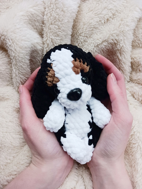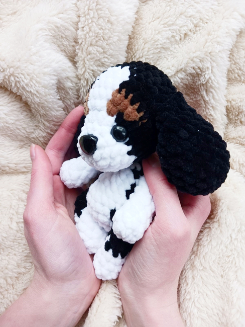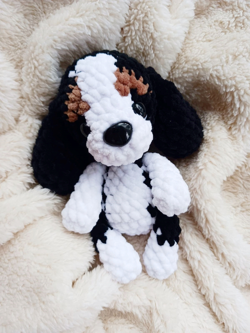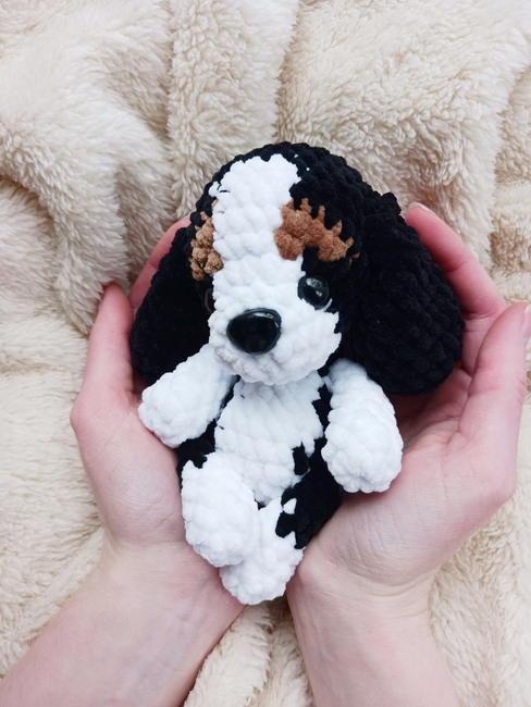 This pattern is for intermediate crocheters, but beginner crocheters who can keep a good stitch count and closely follow the color-changing instructions should still be able to make it without any trouble. The pattern requires frequent color changes that need to be in the correct place or the puppy's markings will be wonky.