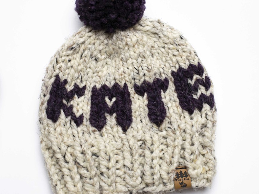 Personalized Name Hat Winter Pompom Initials