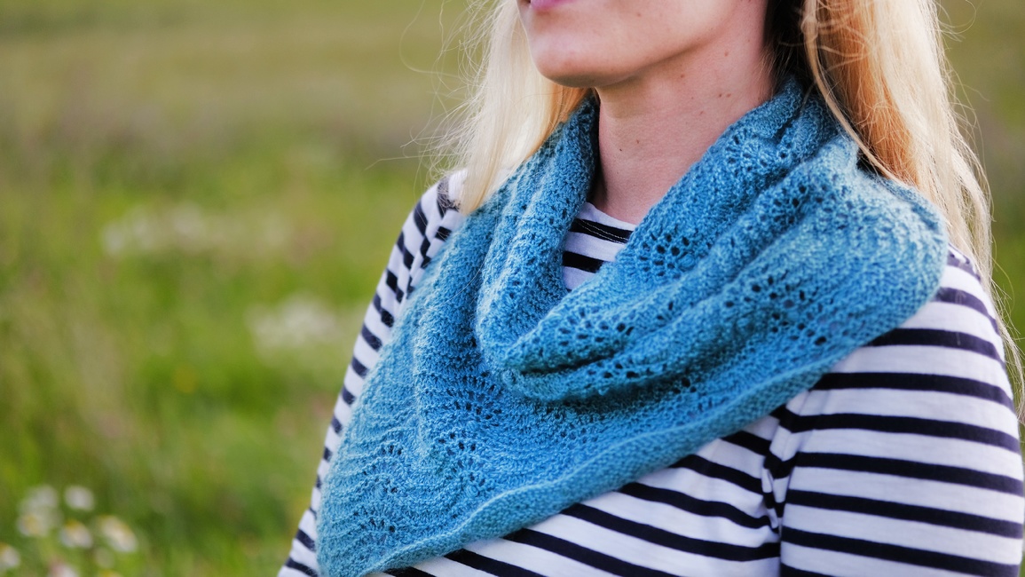 The Petal Drop Cowl pattern costs 6.25 USD on Ribblr.