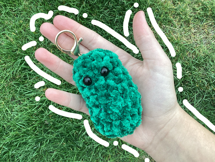Hi welcome to how to make a pickle keychain! Plz do not copy this pattern! Plz and thank you!