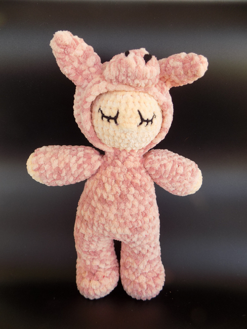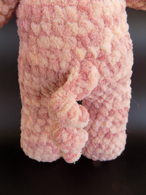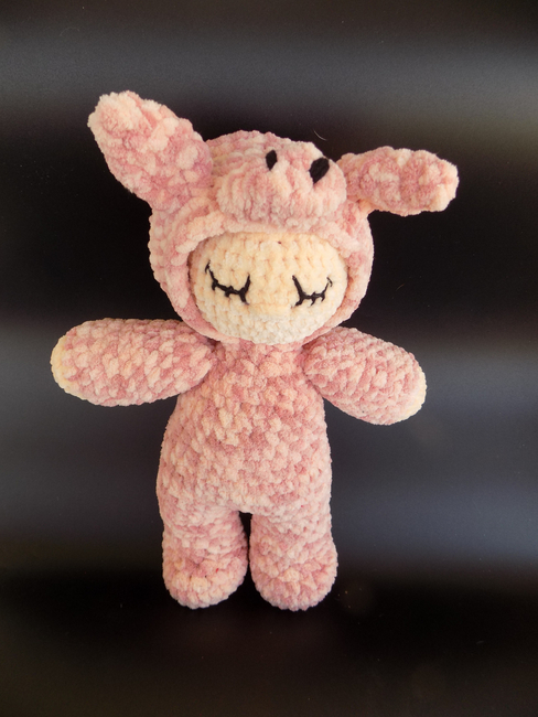 This piggy baby doll is for early intermediate crocheters. You will be crocheting arms, legs,ears, snout, & tail on as you go. The hood, ears, & facial features will be sewn on. This pattern is an original of mine. It is for personal use only. Do not copy or sell the pattern. You are welcome to sell your finished product, but please give me pattern credit when posting online.