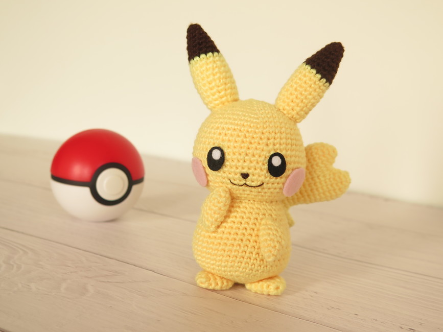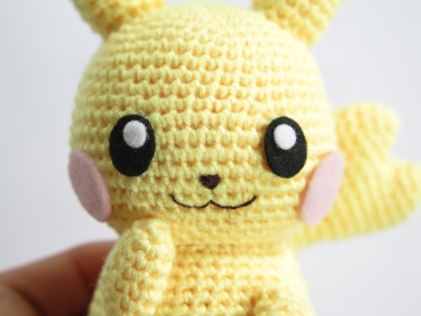 This crochet pattern contains a detailed description on how to crochet Pikachu (female), aided by step-by-step photos.