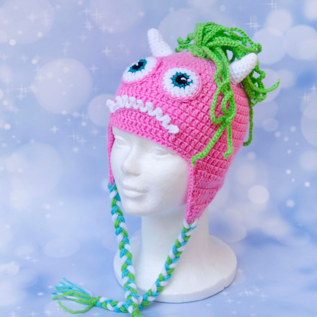 The Pink Monster Hat pattern makes a Accessories. It is a Beginner Crochet pattern.