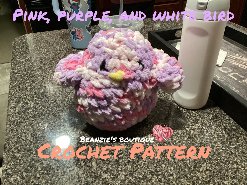 This is a cute pink, purple, and white bird pattern! Takes about a day to make and the perfect snuggle buddy! This pattern includes the Magic Ring and Single Crochet and some Sewing.