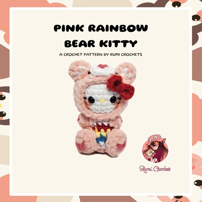 Rumi Crochets designed the Pink Rainbow Bear Kitty Crochet Pattern pattern. Find more of their patterns on their Ribblr shop page.