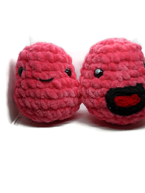 This includes instructions to make two different styles of faces for your pink slime. Depending upon which style you choose, it will work up in 30 minutes. It's a great pattern for beginners! This is made with Parfait XL yarn but you can choose another super bulky weight yarn or use two strands of a 4ply yarn such as red heart super saver.