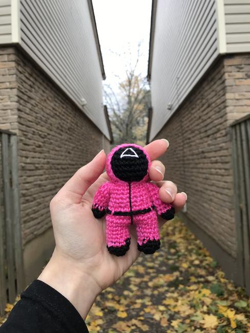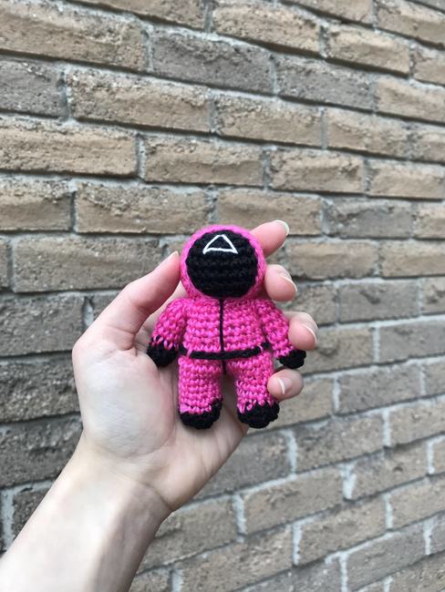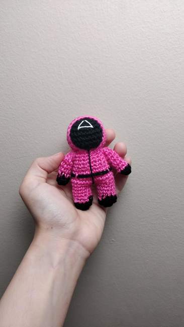 These cute amigurumi player 456 and Pink soldiers make the perfect figure and toy for decor and play, or even make it as a gift.