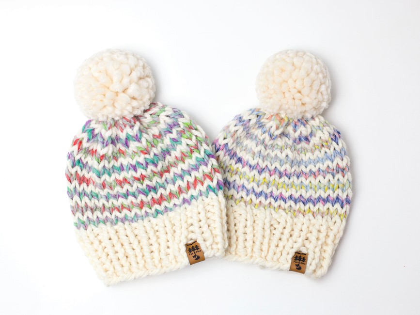 Our chunky pinstripe pompom hat knitting pattern is perfect for making handmade gifts for your loved ones, young and old.
