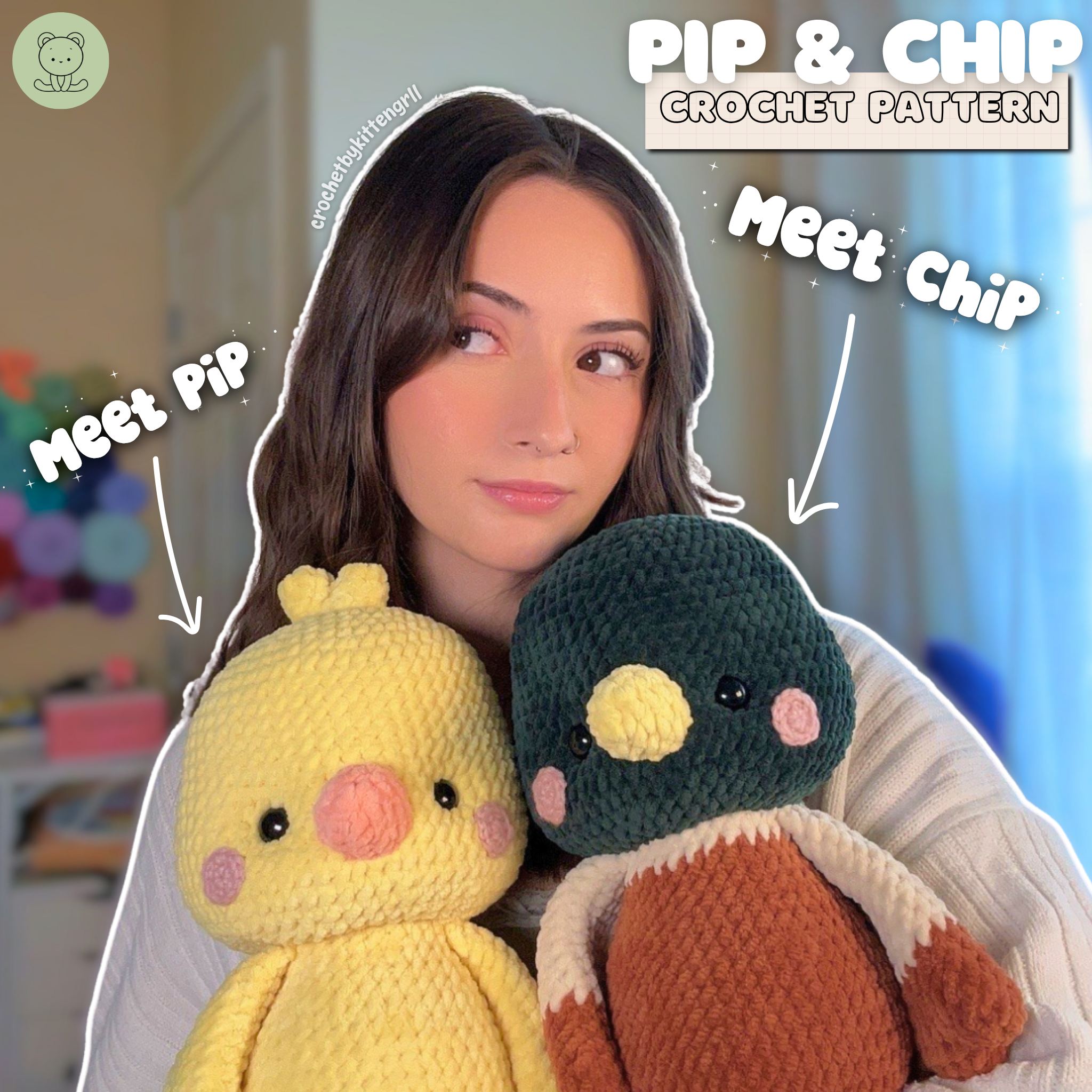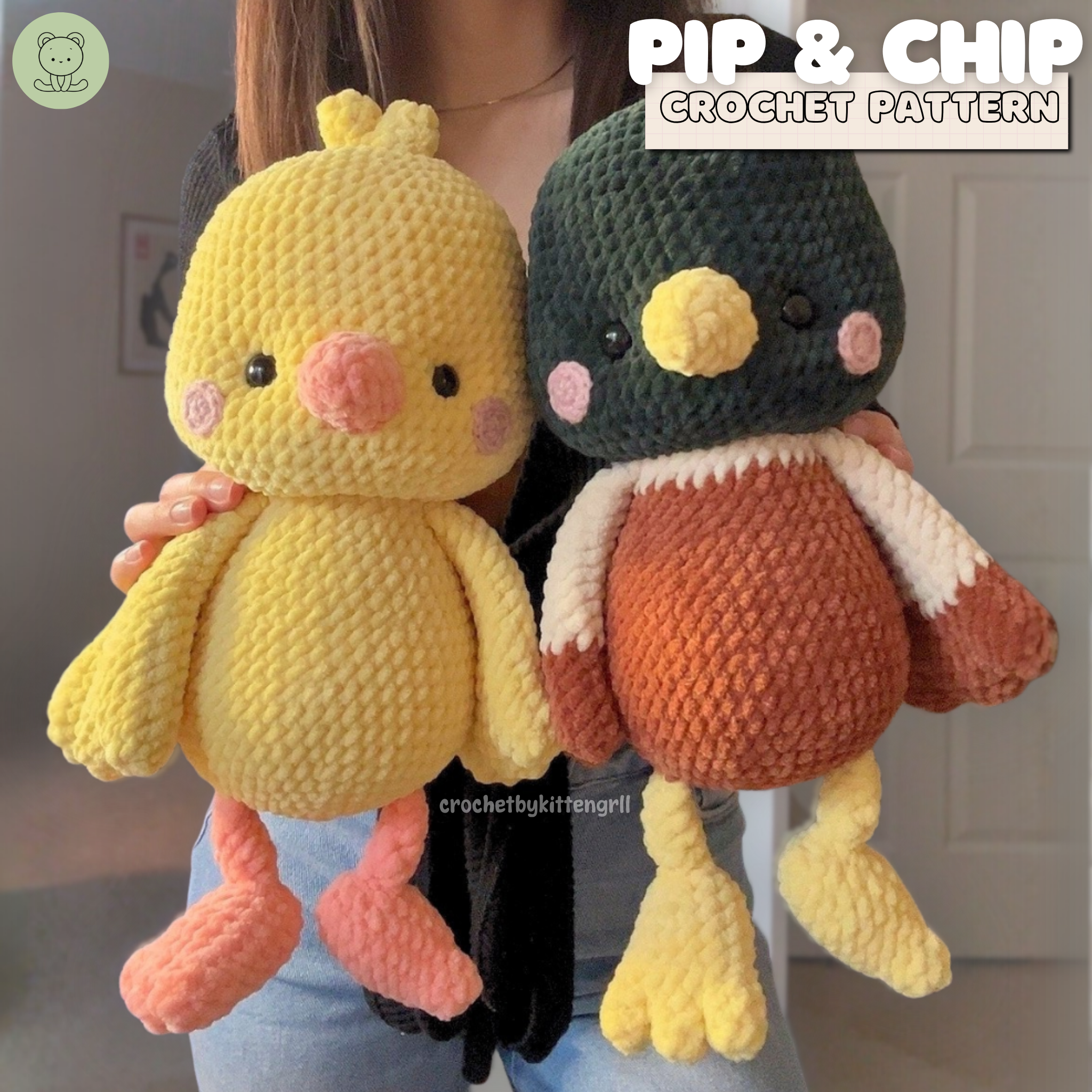 crochetbykittengrll designed the Pip & Chip Crochet Pattern pattern. Find more of their patterns on their Ribblr shop page.