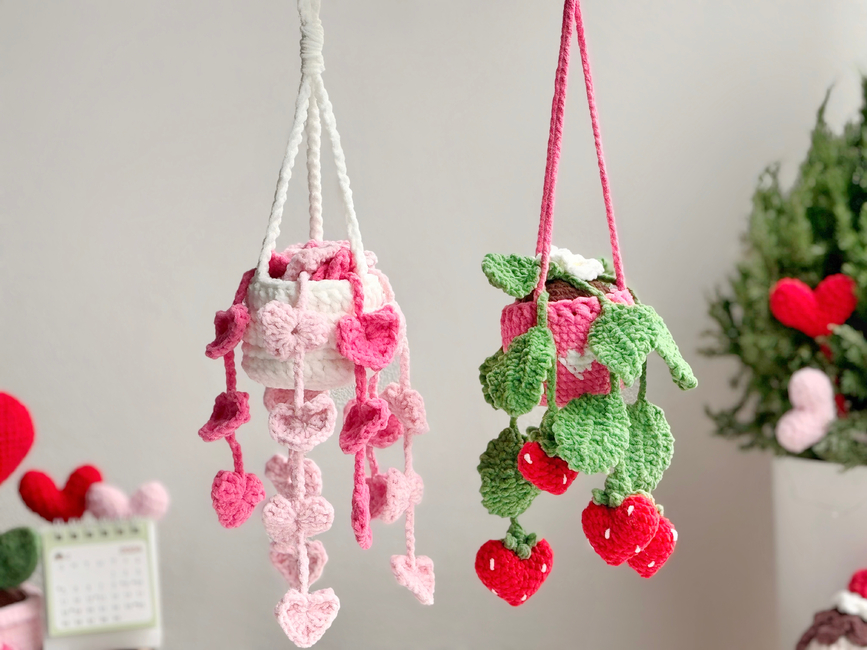 Plant Car Hanging Crochet Pattern, Strawberry Car Hanging Pattern, Pothos Car Hanging Pattern, Valentine Crochet Pattern