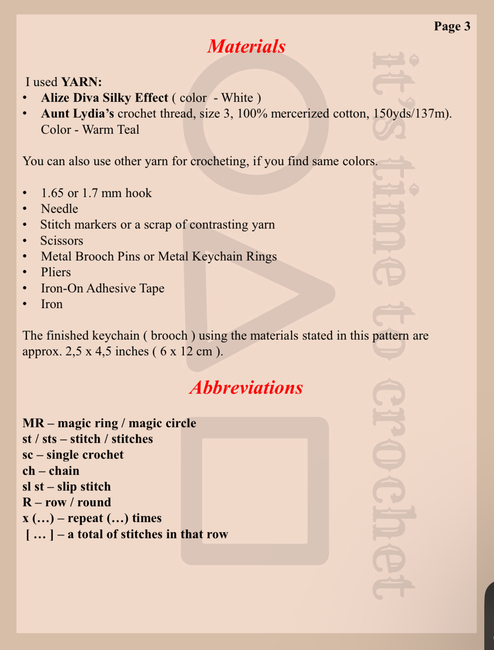 To make Player numbers inspired Squid Game you will need: Alize Diva Silky Effect ( color - White )Aunt Lydia@qs crochet thread, size 3, 100% mercerized cotton, 150yds/137m). Color - Warm Teal, 1.65 or 1.7 mm hook NeedleStitch markers or a scrap of contrasting yarn ScissorsMetal Brooch Pins or Metal Keychain RingsPliersIron-On Adhesive TapeIron.