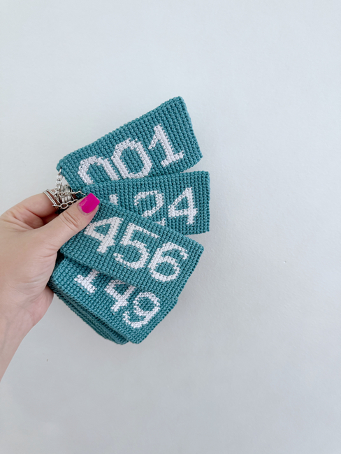 HandcraftByMK designed the Player numbers inspired Squid Game pattern. Find more of their patterns on their Ribblr shop page.