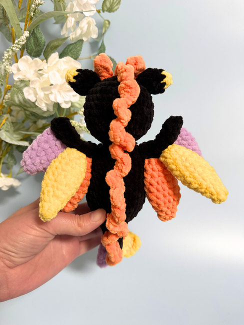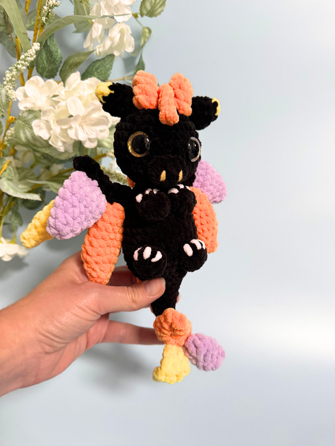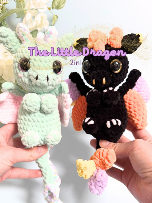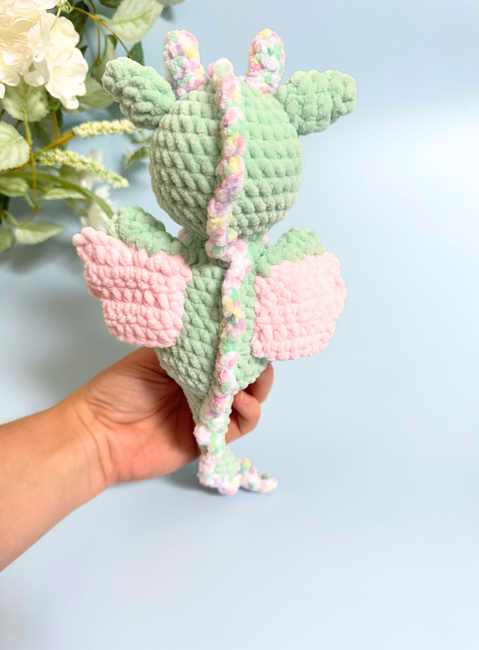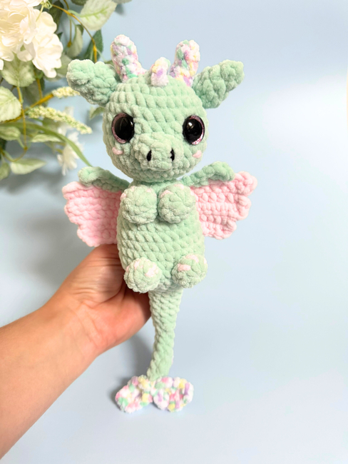 - Finished toy size approximately (using Super Chunky/Super Bulky yarn and a 5 mm hook) - length 27 cm and 30 cm (from the dragon's horns to the tip of the tail).