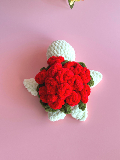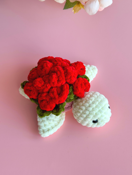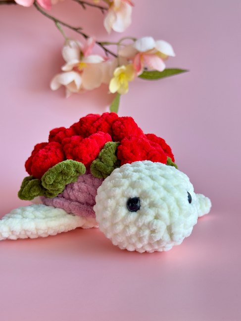 Make this beautiful flower turtle yourself. Adorable little turtle pattern with rose flower - looks like a plush bouquet!