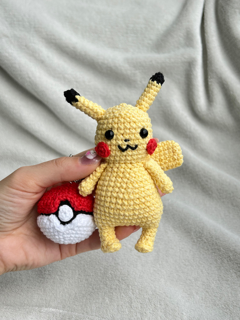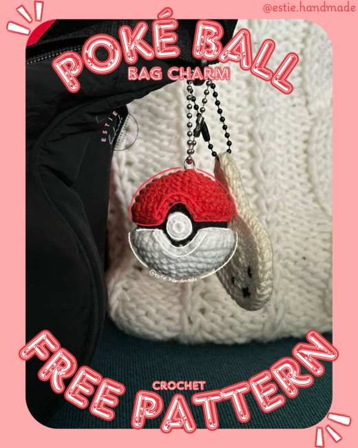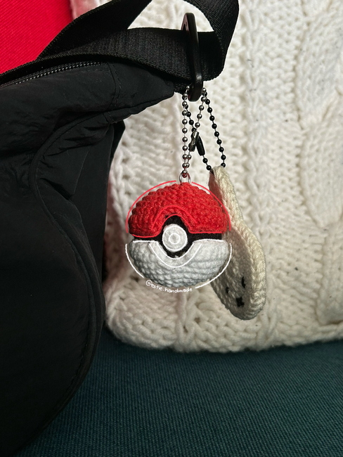 Pattern for the cutest, tiny crochet pokéball bag charm. You can use it on your bag, or as a keychain, or even make it with chunky yarn for a cute plushie. Add eyes for the jellycat vibes.