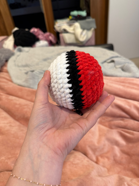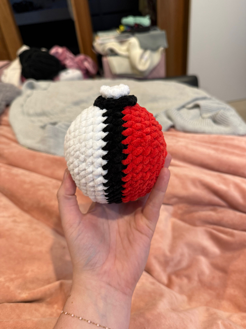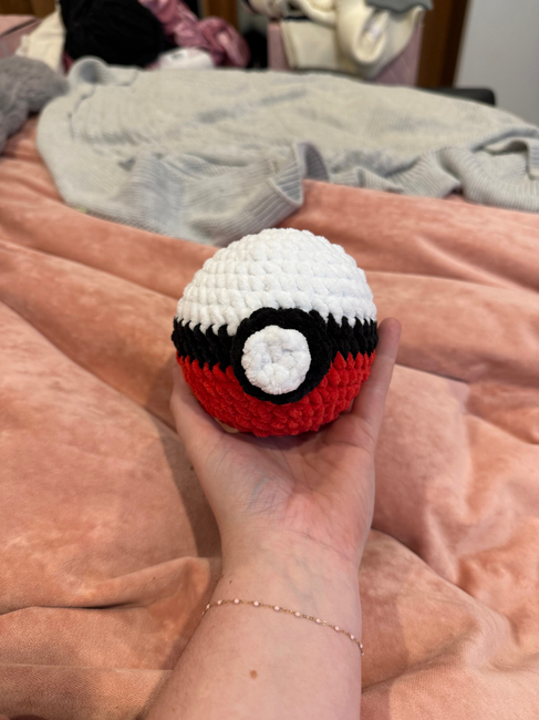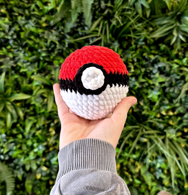 This pattern was created to get as close to what a pokeball looks like while still being a soft crochet toy