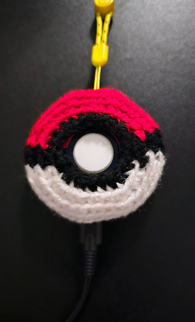 This pattern is a cover for the new Pokemon Go Plus + auto catching tool. The pattern includes instructions for adding an opening for the charger port and the lanyard.
