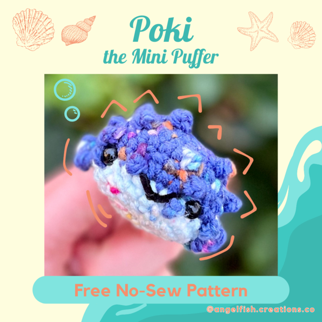 Poki The Mini Puffer - no-sew is a Beginner Crochet pattern designed by Angelfish Creations for making an Amigurumi. Fun Fact: Many fish have a color pattern called countershading where they are darker on their back and lighter on their belly. This is the reason why I choose complimentary dark and light colors for the top and bottom of the puffer, respectively.T...