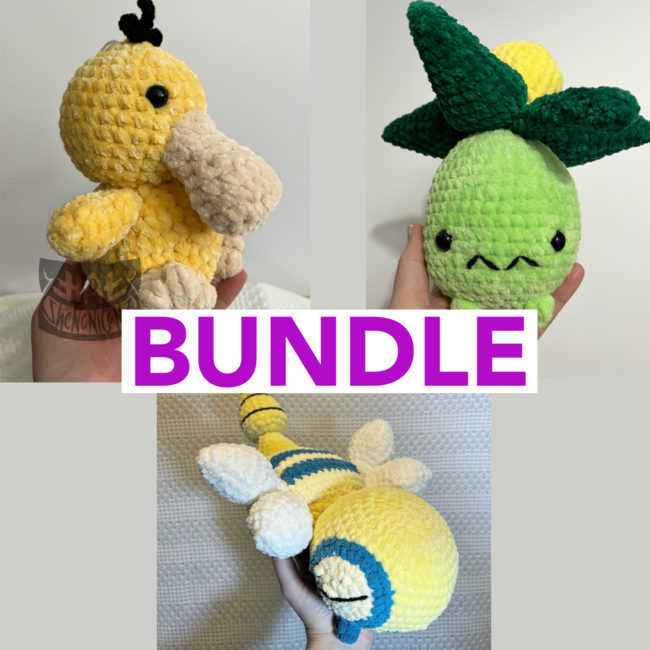 Make 3 Pokémon with this pattern bundle! Psyduck, Smolive and Dunsparce can be yours if you want to crochet them all!